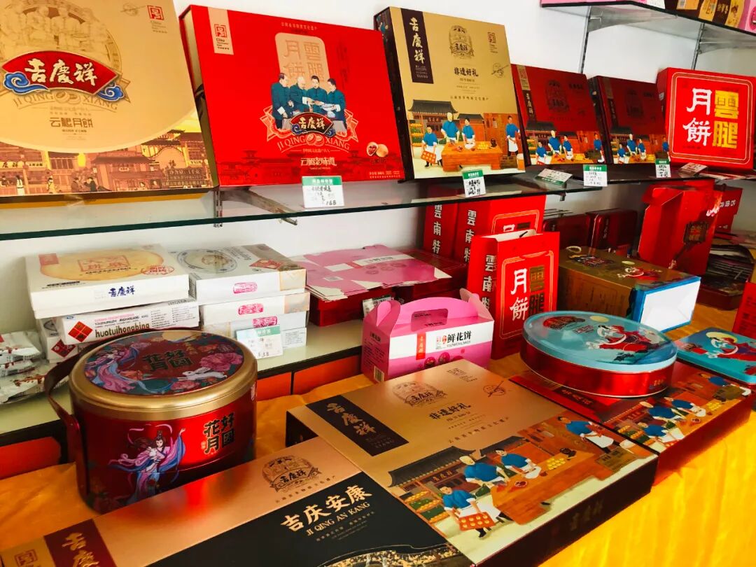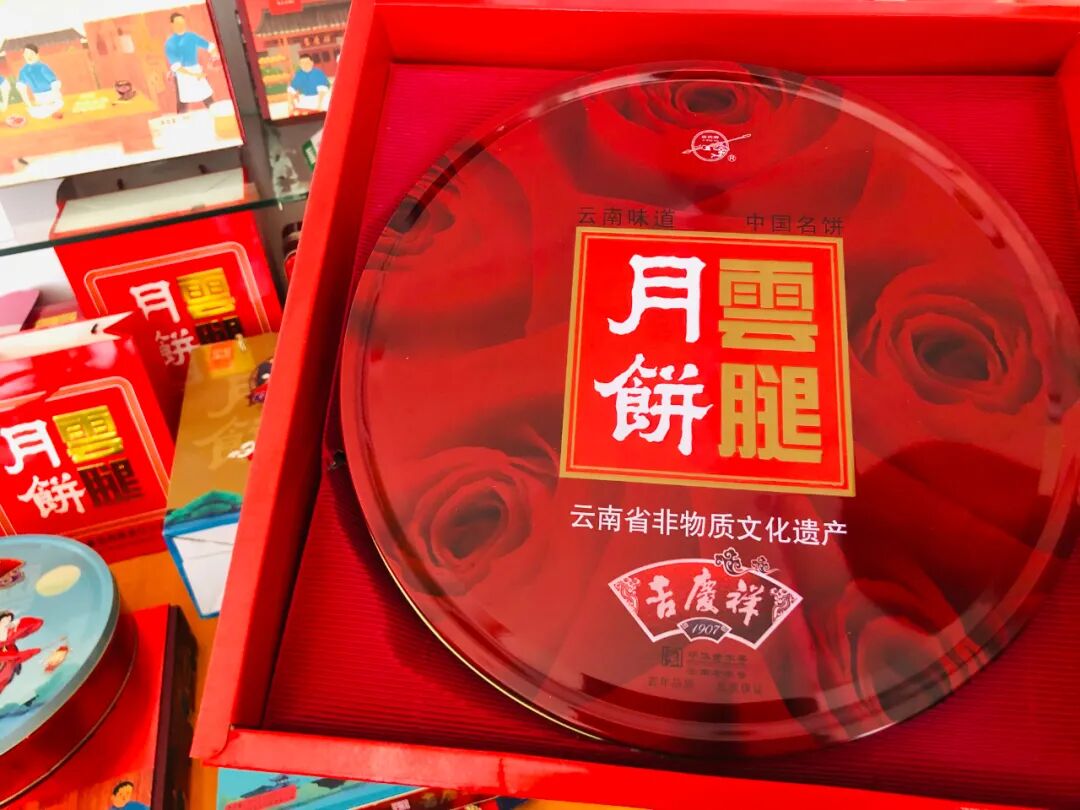 在吉庆祥出品的滇式糕点中,硬壳云腿月饼为出名。