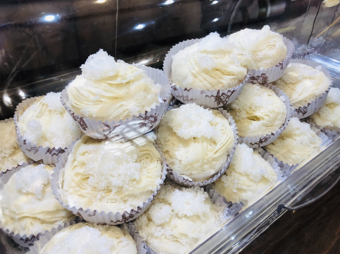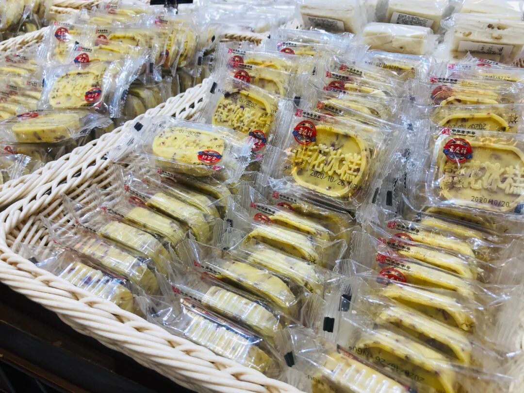 走进吉庆祥店内,一股浓浓的黄油香气和淡淡的甜味便扑鼻而来。琳琅满目的各色糕点让人眼花缭乱,食欲大开。其中,有名的莫过于云腿月饼。